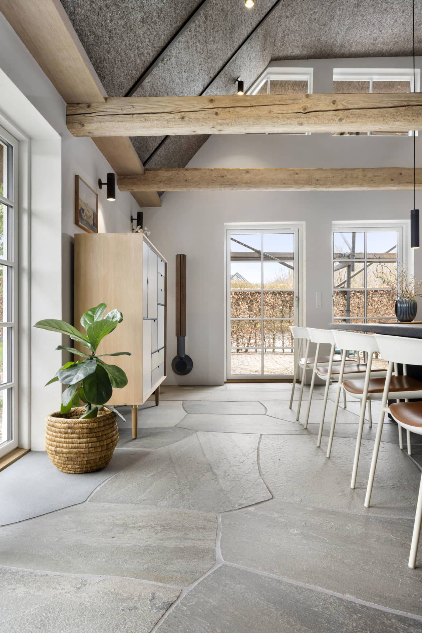 Norwegian slate can be used indoors and outdoors. on cast surfaces and in loose materials. In Odense, Stoneart Flagstone in Light Oppdal has been installed.
