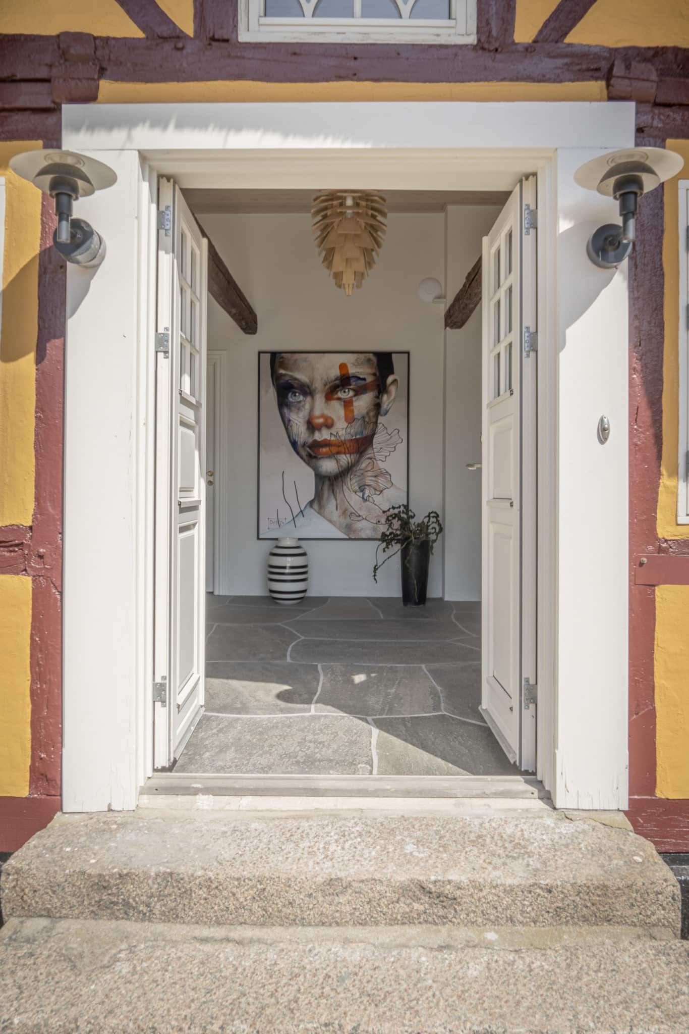 This authentic country estate from 1826 is a beautiful example of classic Danish half-timbered architecture. With its well preserved thatched roof, symmetrical courtyard and characteristic yellow and red facade, the property exudes both warmth and history.